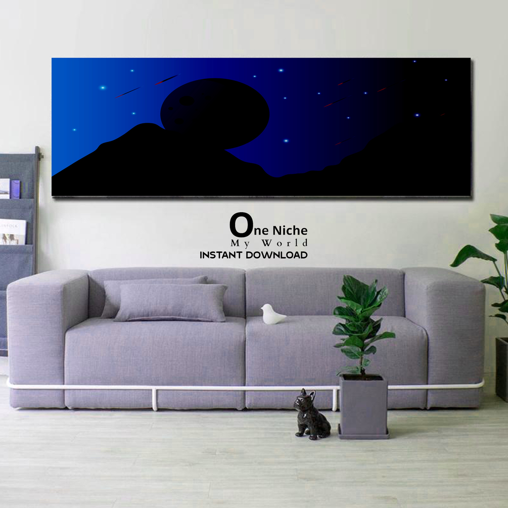 Dark Night Vector Wall Art Digital Print, Wall Printable Art, Vector Sky, Digital download, Low Angle Scenery, Dark and Light Separation